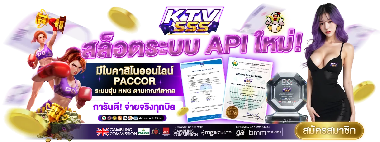 สัมผัสความบันเทิงระดับพรีเมียมที่กระแทกใจสายเกมมิ่งเข้าอย่างจัง ด้วยเทคโนโลยีสุดล้ำที่ถูกนำมาประยุกต์ใช้เพื่อสร้างสรรค์ ระบบดีเยี่ยม KTV555 ภาพสวยคมชัด เล่นลื่นไหลดี ฟีเจอร์ครบครัน ให้กลายเป็นสวรรค์ของนักปั่นอย่างแท้จริง ทุกองค์ประกอบถูกออกแบบมาอย่างพิถีพิถันเพื่อมอบประสบการณ์ที่ดีที่สุดให้กับคุณ ตั้งแต่กราฟิกตระการตาสามมิติที่สมจริงจนแทบจะหลุดออกมานอกจอ เอฟเฟกต์เสียงกระหึ่มเร้าใจที่เพิ่มอรรถรสในการเดิมพันให้มันส์หยดติ๋ง ไปจนถึงความเสถียรของเซิร์ฟเวอร์ที่รองรับผู้เล่นพร้อมกันนับแสนคนได้อย่างสบายๆ ไม่มีอาการค้าง กระตุก หรือหลุดเด้งให้เสียอารมณ์อย่างแน่นอน ไม่ว่าคุณจะใช้อุปกรณ์รุ่นไหน สมาร์ทโฟน แท็บเล็ต หรือคอมพิวเตอร์ ก็สามารถเข้าถึงความสนุกได้อย่างไร้ขีดจำกัด พร้อมฟังก์ชันตัวช่วยสุดเจ๋งมากมายที่จะทำให้การล่ารางวัลของคุณง่ายยิ่งขึ้น ทั้งโหมดซื้อฟรีสปินที่ลัดคิวสู่โบนัสก้อนโต หรือระบบออโต้สปินที่ช่วยทุ่นแรงให้คุณนั่งจิบกาแฟรอดูเงินไหลเข้าบัญชีแบบชิลๆ ความสมบูรณ์แบบนี้รอให้คุณมาพิสูจน์ด้วยตัวเอง